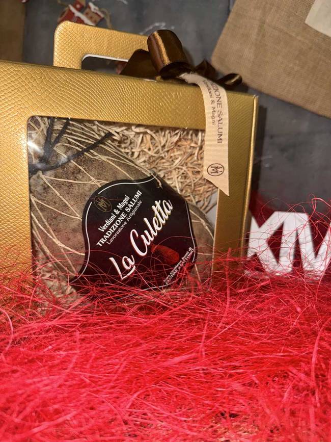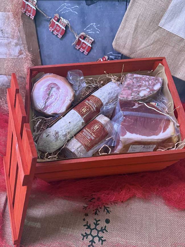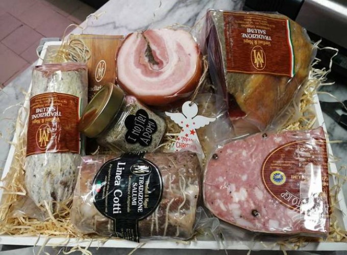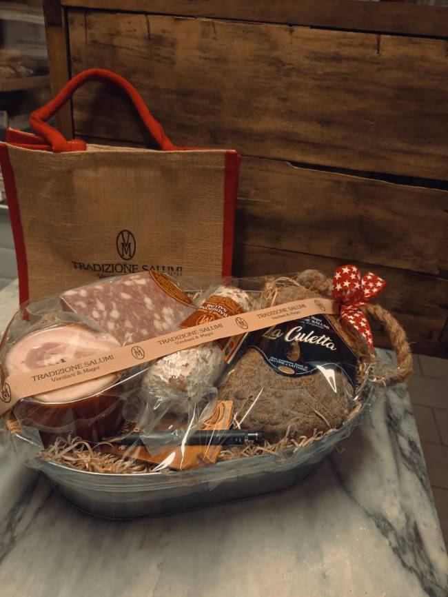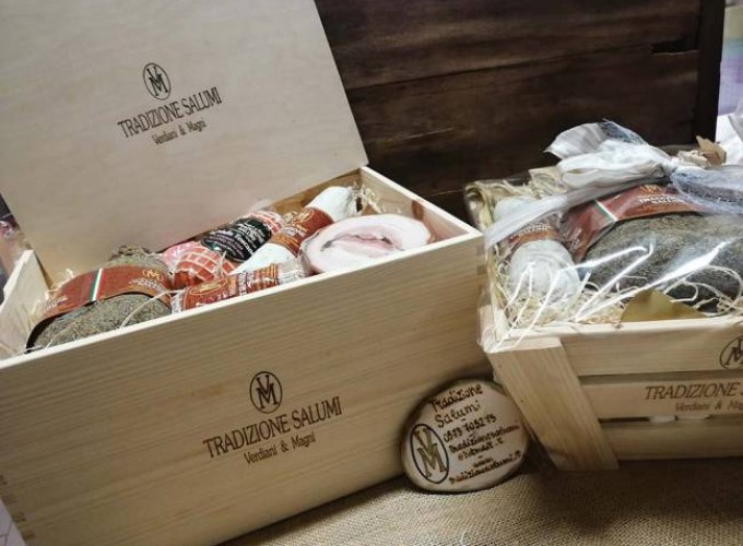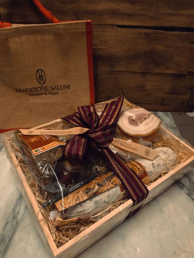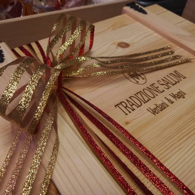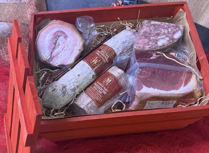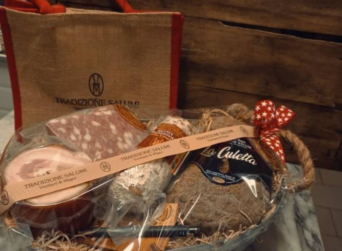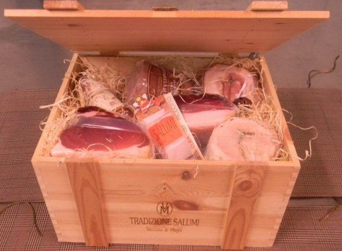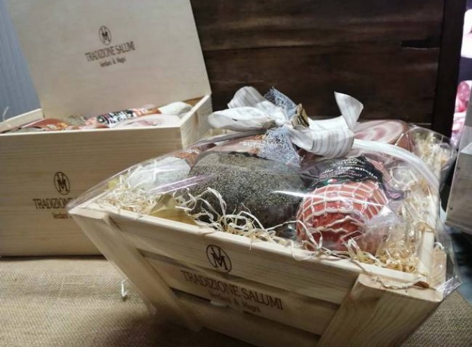 Le nostre confezioni sono composte esclusivamente di salumi ma niente vieta la personalizzazione con bottiglie di vino, formaggio o altro di vostro gradimento.